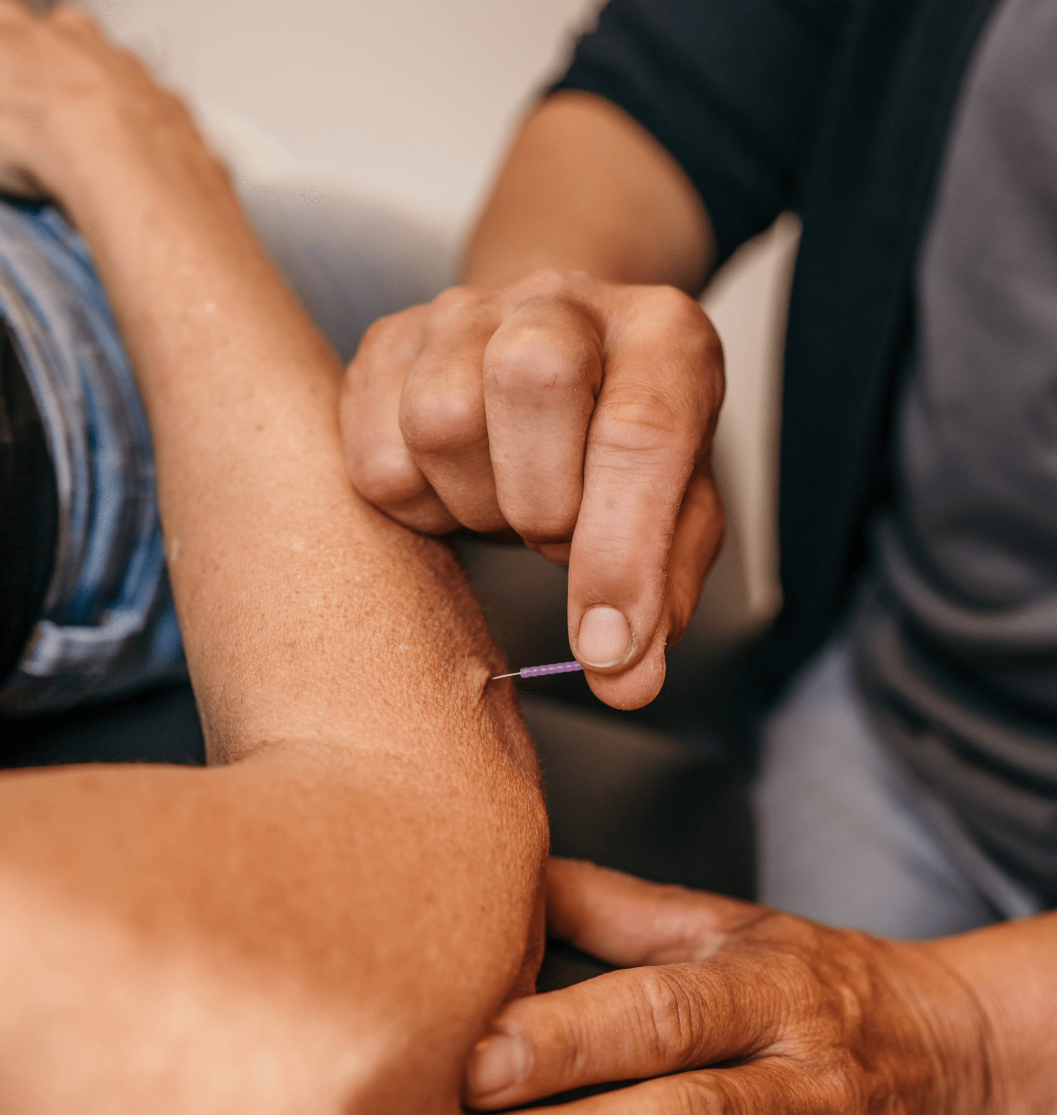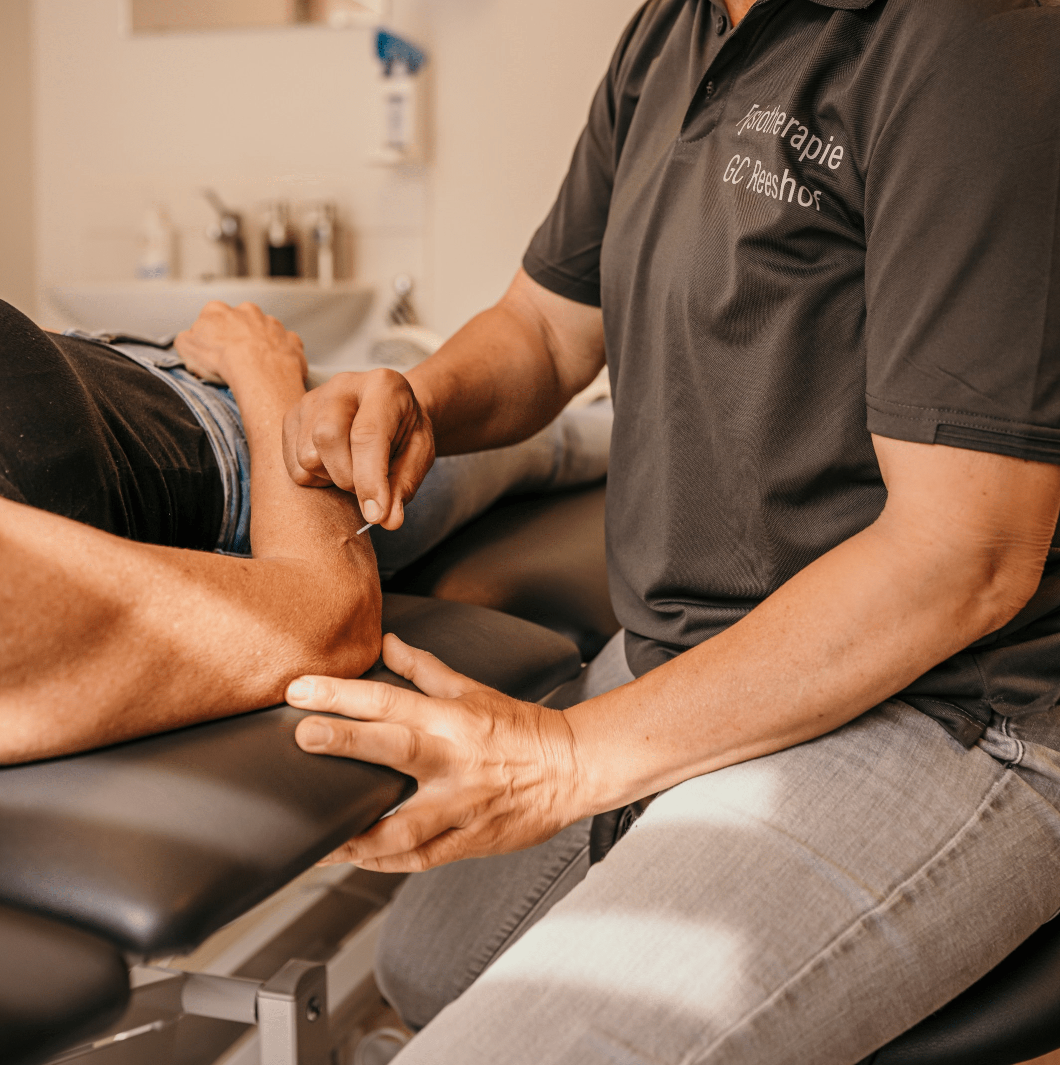 Uw fysiotherapeut lokaliseert eerst de triggerpoints in uw spieren en of deze triggerpoints de herkenbare lokale pijn en/of uitstralende pijn geven. Daarna zet uw fysiotherapeut de naald in uw huid. Hier voelt u meestal niets van. Via de huid prikt de fysiotherapeut in uw spier en zoekt de triggerpoint op. Dit is in het algemeen een niet pijnlijk, dof gevoel. Het doel van de behandeling is het opwekken van een zgn. ‘local twitch respons’( kortdurige spiersamentrekking); deze kan een kortdurende pijn geven. Veel mensen ervaren het als een elektrisch schokje. De naald wordt na het vinden van deze twitch een aantal keren door het triggerpoint bewogen, met als doel zoveel mogelijk spiervezels los te maken. Afhankelijk van de spier en het aantal triggerpoints kunnen de twitches heftig aanvoelen. Ook kan er een vegetatieve reactie optreden: rillerig gevoel, zweten, misselijkheid. Hoewel dit onplezierig kan zijn, is het van voorbijgaande aard. Wel wordt daarom altijd in een liggende positie behandeld. Na de behandeling is het belangrijk om de spieren in beweging te houden. Daarom geeft uw fysiotherapeut advies en oefeningen mee voor thuis.